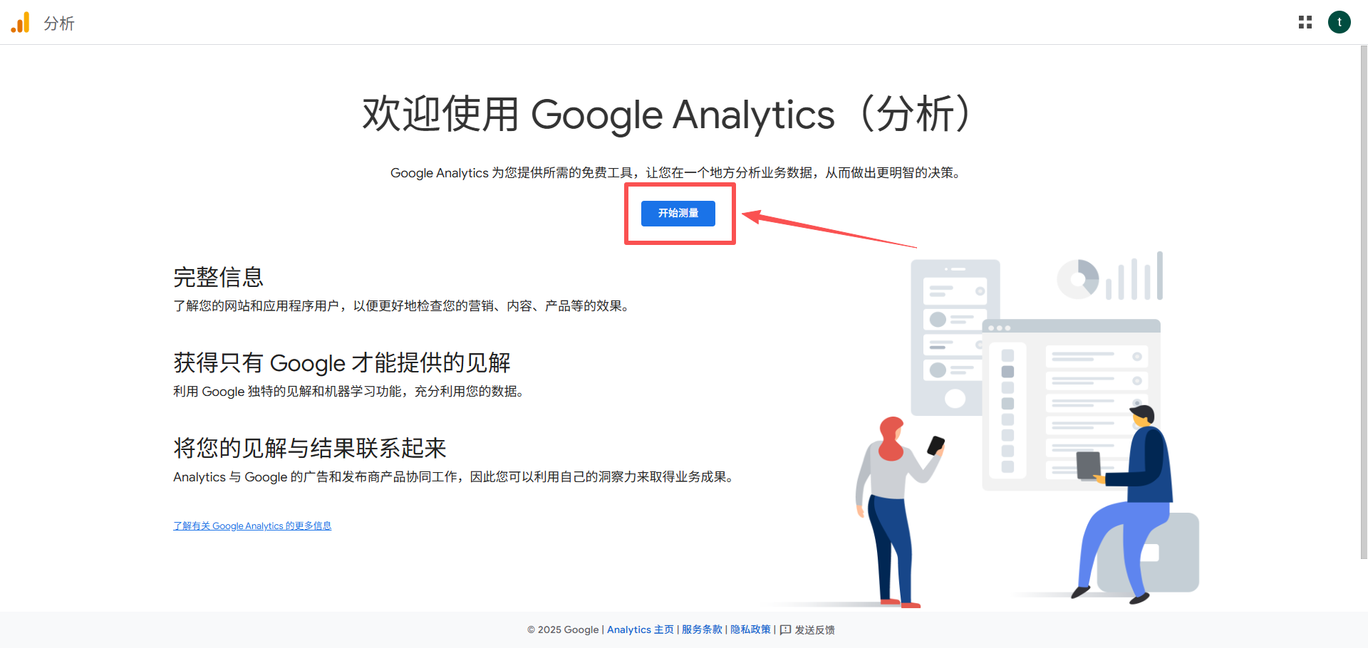 创建谷歌分析,需要先注册Google账号,使用Google账号登录Google Analytics后台,https://marketingplatform.google.com/intl/zh-CN_cn/about/analytics 点击立即开始使用